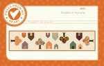 This runner features a town bursting with fall color. Fabrics from the line The Awe of Autumn by Sandy Gervais for Riley Black Designs are featured in this pattern. Finished size: 62" x 14""