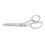 Gingher Serrated Knife-edge Dressmaker Shears feature a serrated blade that gently grips fabric so the knife-edge blade can make a clean, precise cut through smooth, lightweight fabrics as well as through multiple layers of heavier fabric. Their double-plated chrome-over-nickel blade finish is both striking and durable. A bent handle design helps hold fabric flat on your worksurface for smooth, comfortable, mistake-free cutting. These shears also include a protective nylon sheath for storage.